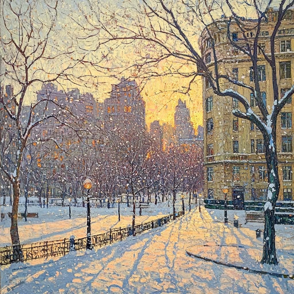 この絵は、そんな冬の日の一瞬をとらえた作品です。