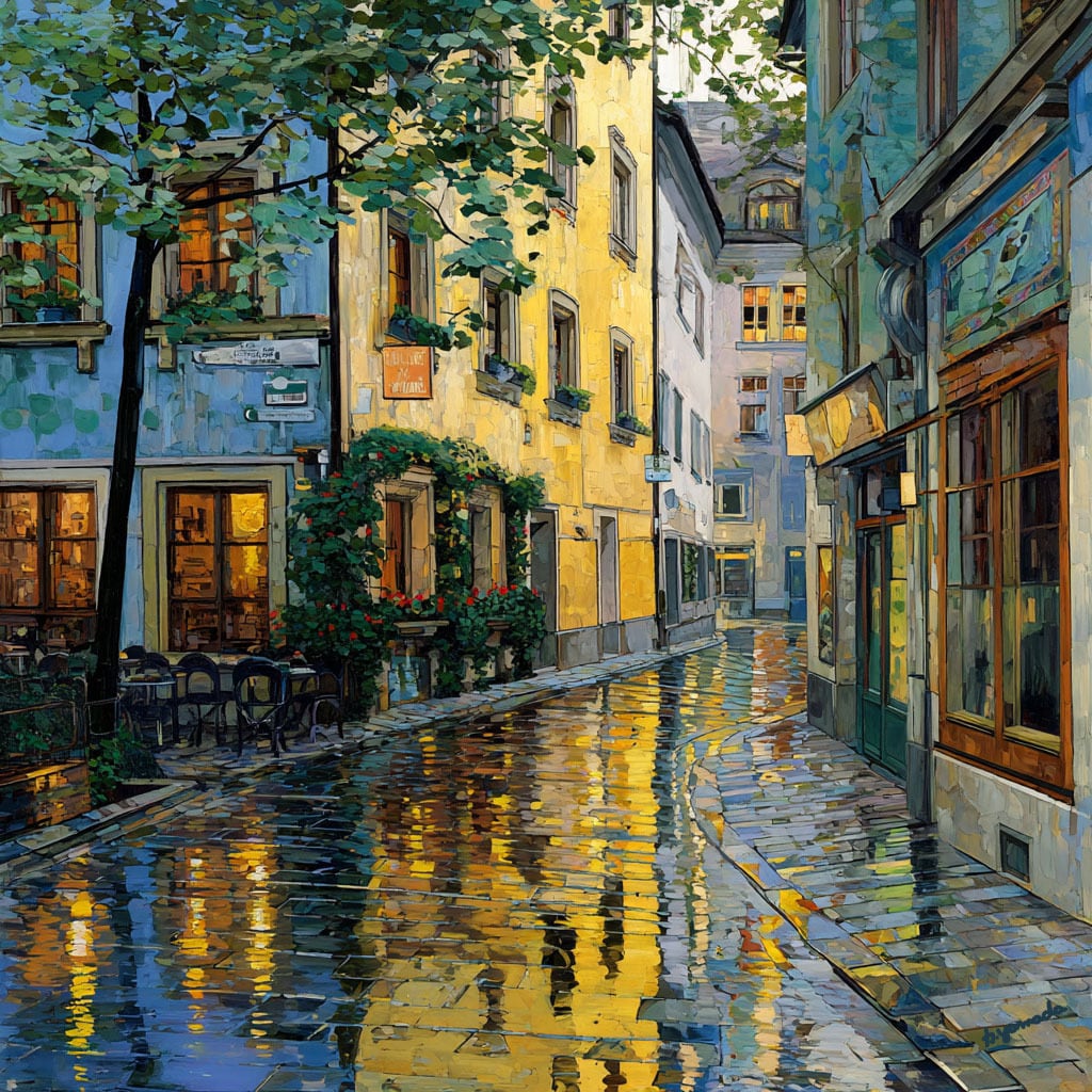しっとりと濡れた石畳が、