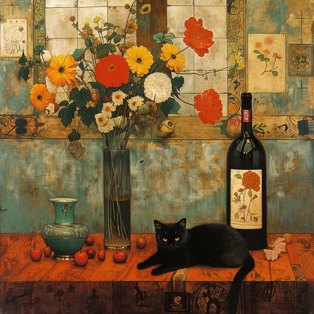 この愛らしい妨害こそが、日々の安らぎと癒しをもたらす、エレガントで心温まる一枚です。