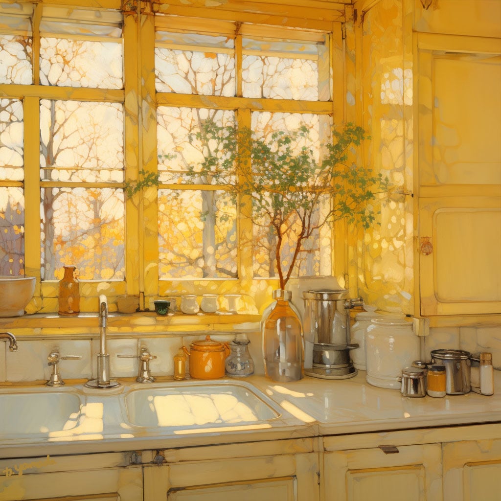 やわらかな金色の光が差し込み、家族の気配やこれまでの時間が静かに満ちています。