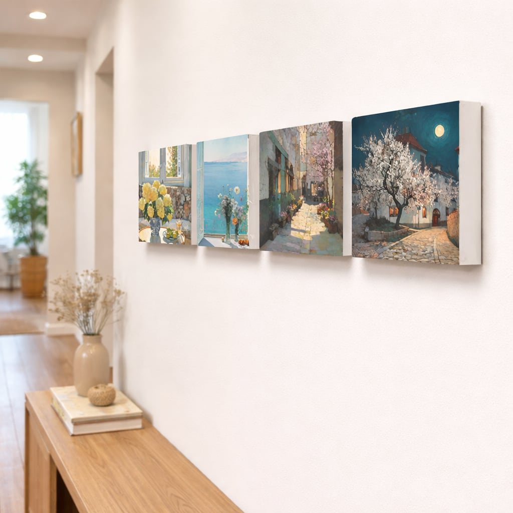 春の一日の流れを、4つの小さな絵に閉じ込めました。